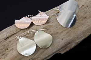 Sterling silver, anticlastic forming, hammer textured and roller embossed →